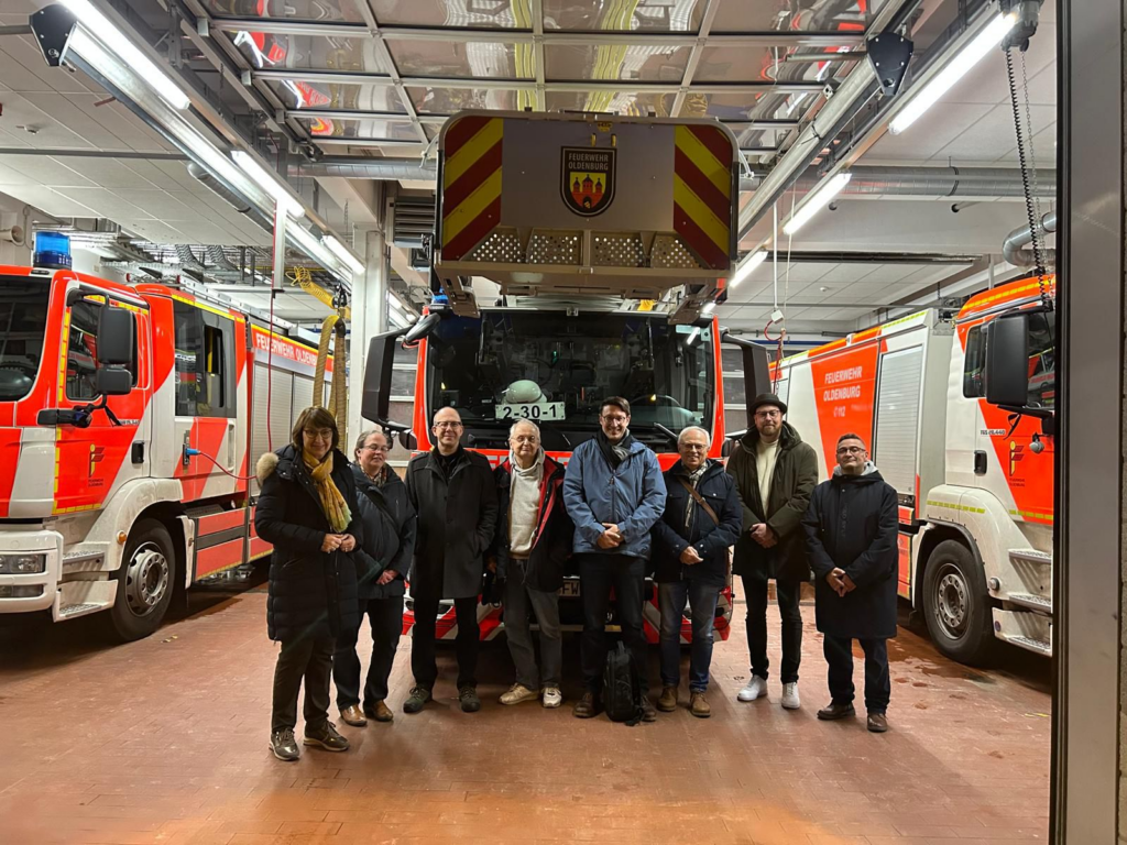 Der Stadtbezirksverband 5 der Oldenburger CDU besucht in regelmäßigen Abständen die wichtigste Institution im Rettungs- und Katastrophenfall: Die Feuerwehr der Stadt Oldenburg. Der letzte Besuch fand am 14. Januar 2026 statt: Acht Mitglieder, darunter der Vorsitzende Tobias Freitag sowie Ratsfrau Barbara Woltmann, informierten sich in ihrem 90-minütigen Besuch u.a. über die Organisation der Dienststelle, Ruhe-, Schlaf- und Essensräume, Räume für Persönliche Schutzausrüstung sowie die Räumlichkeiten für die Einsatzfahrzeuge.